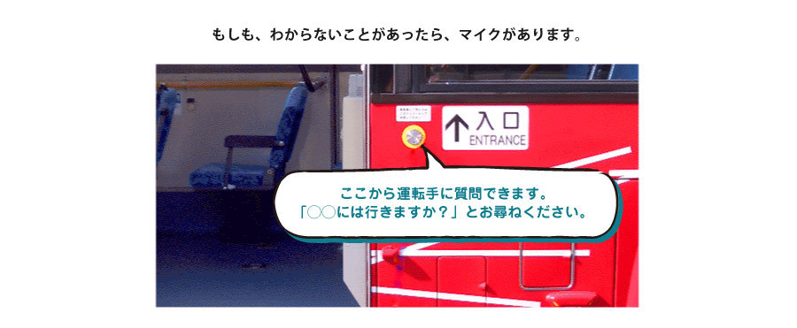 みんなが気持ちよく安全に乗れるよう慌てず並んでいる順番に乗りましょう。運転手さんはみなさんが乗車するまで待ってくれます。